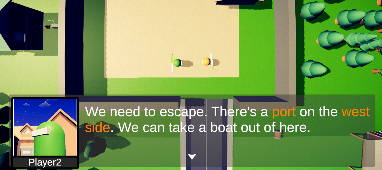 For the Dialogue System it was designed and implemented to give autonomy to each player to stay together or be split meanwhile they explore or are in combat.